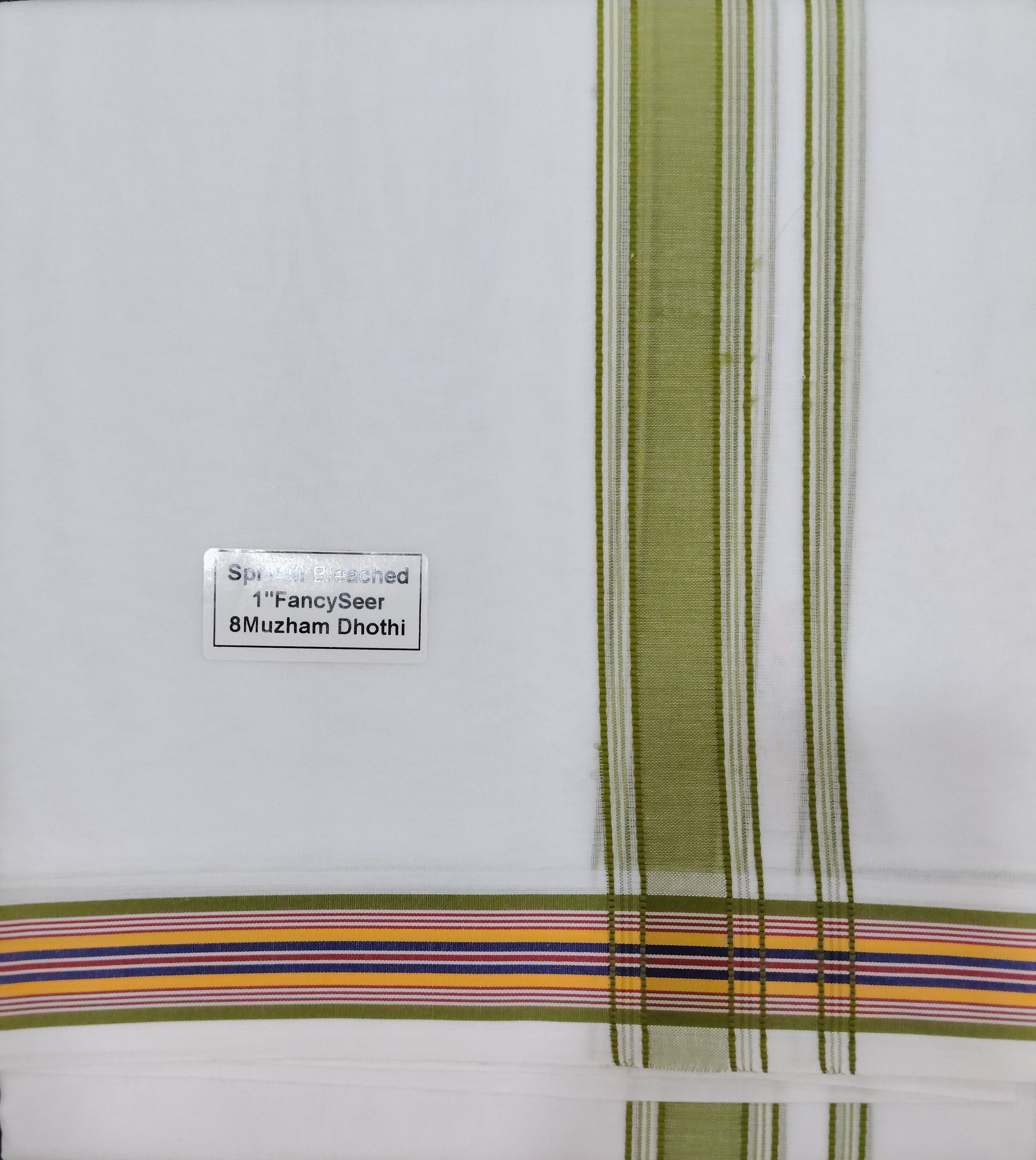 Design - spl mill bleached 1" fancyseer 8muzham dhoti