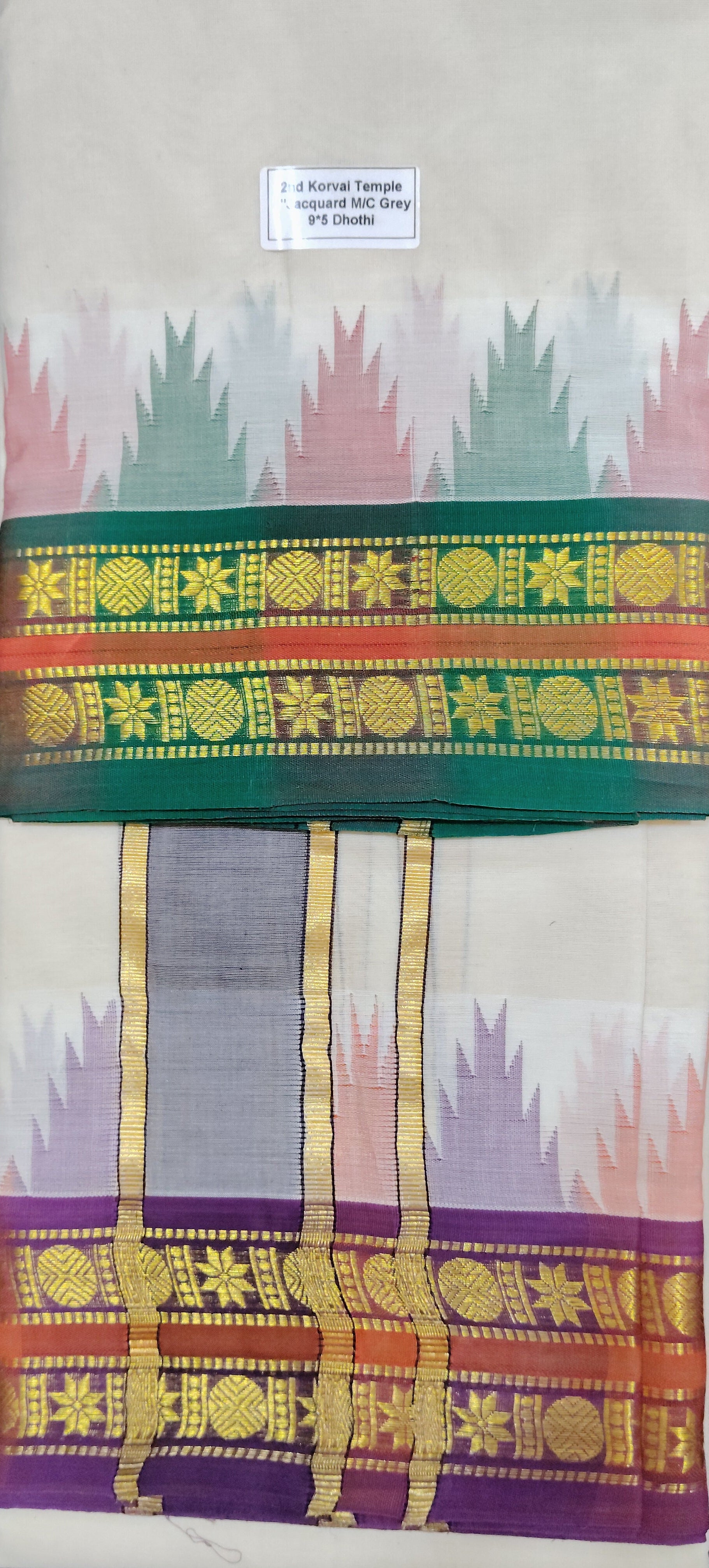 Colour & Design: korvai Temple 4"jacquard M/C grey 9*5 Dhoti