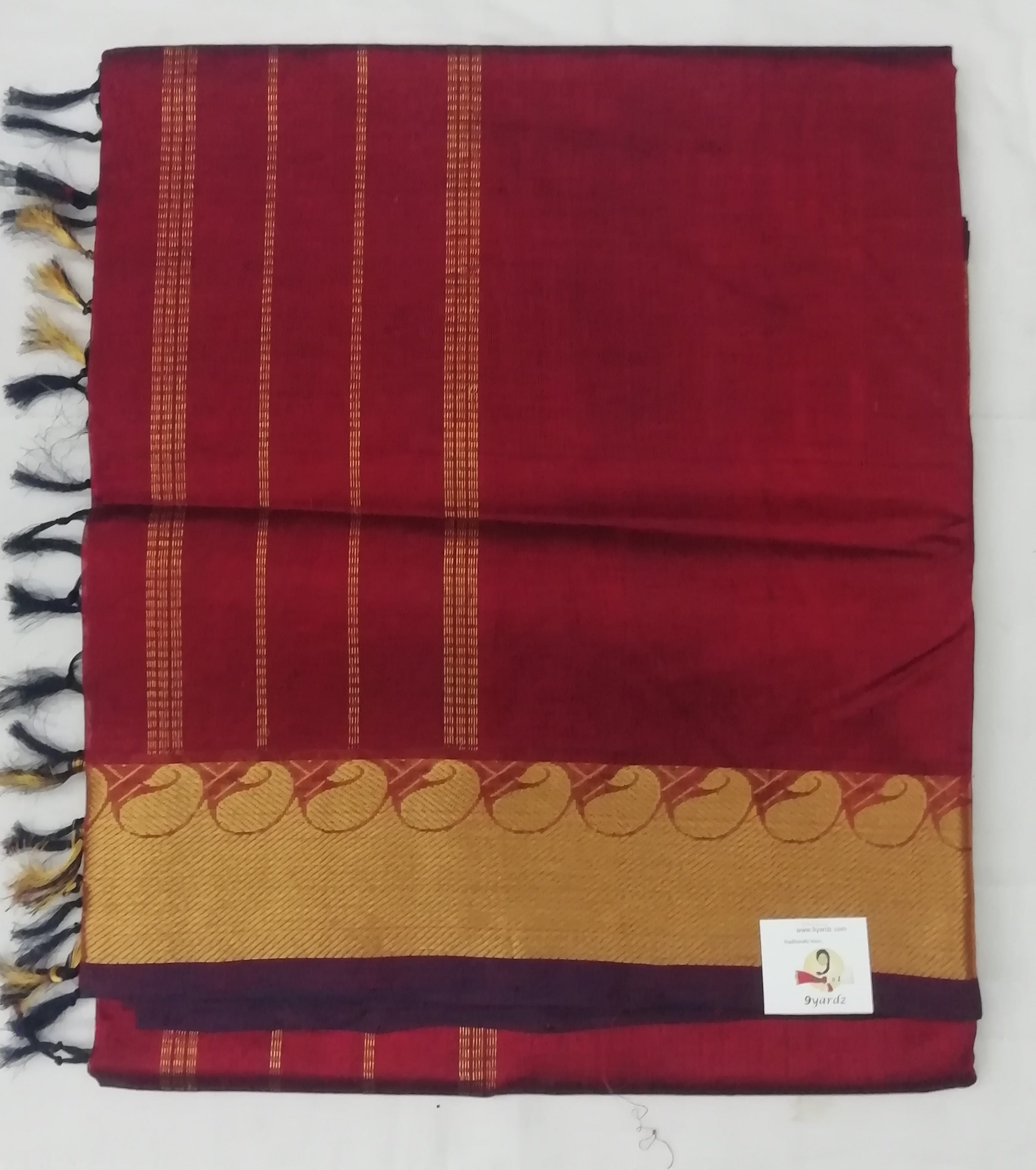 Pure Silk Cotton Saree design border and pallu. Maroon