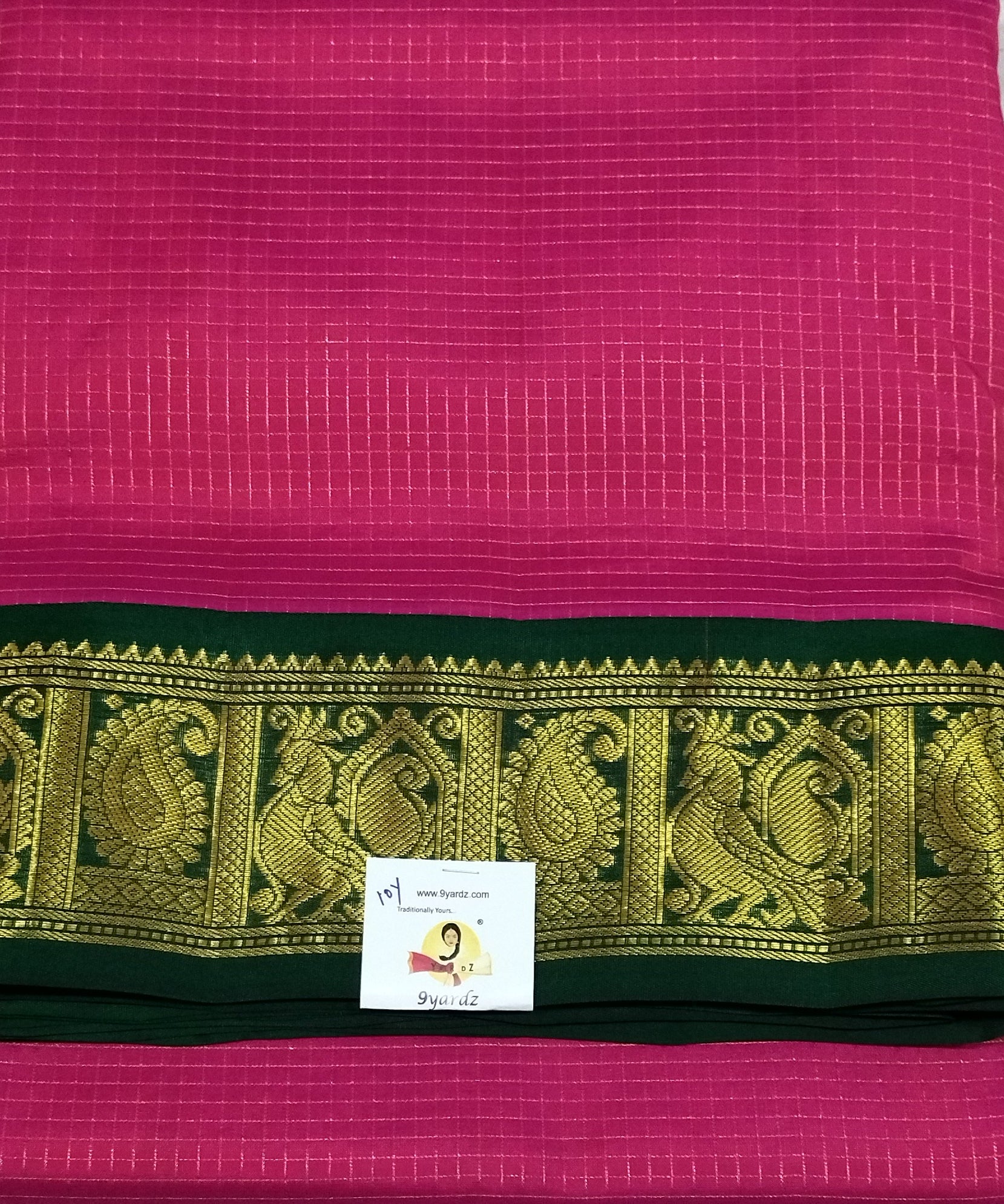 Single Wrape -Zari Checked Body by Mango and peacock Border