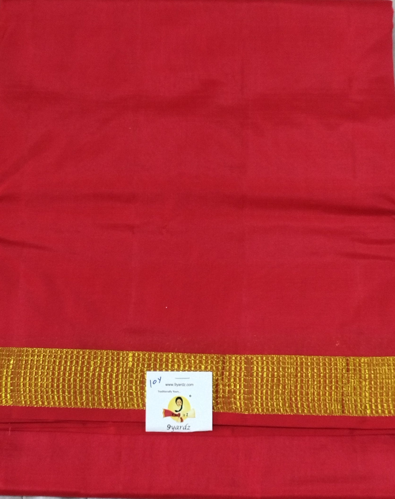 Colour- red by Zari Self border and Pallu