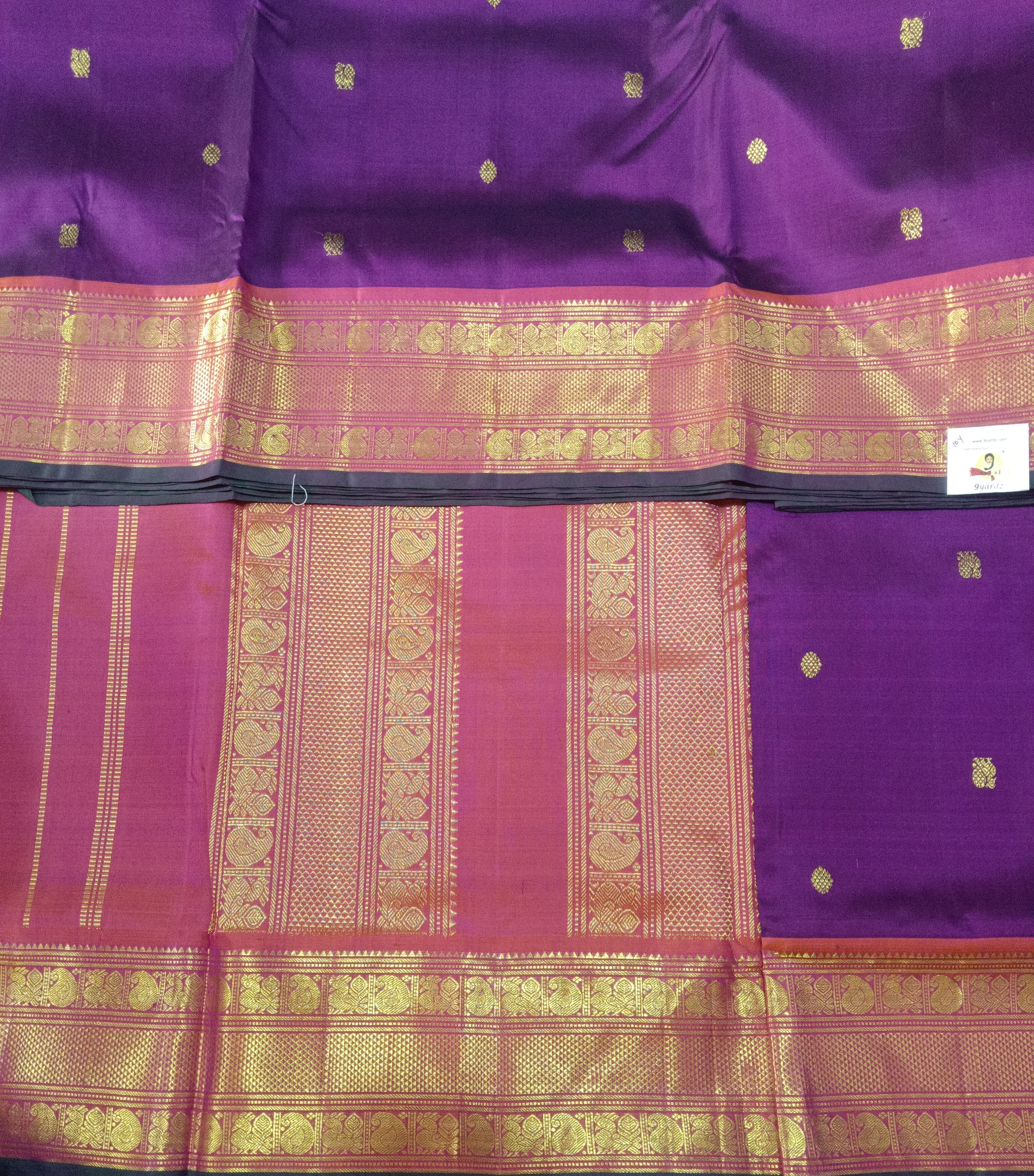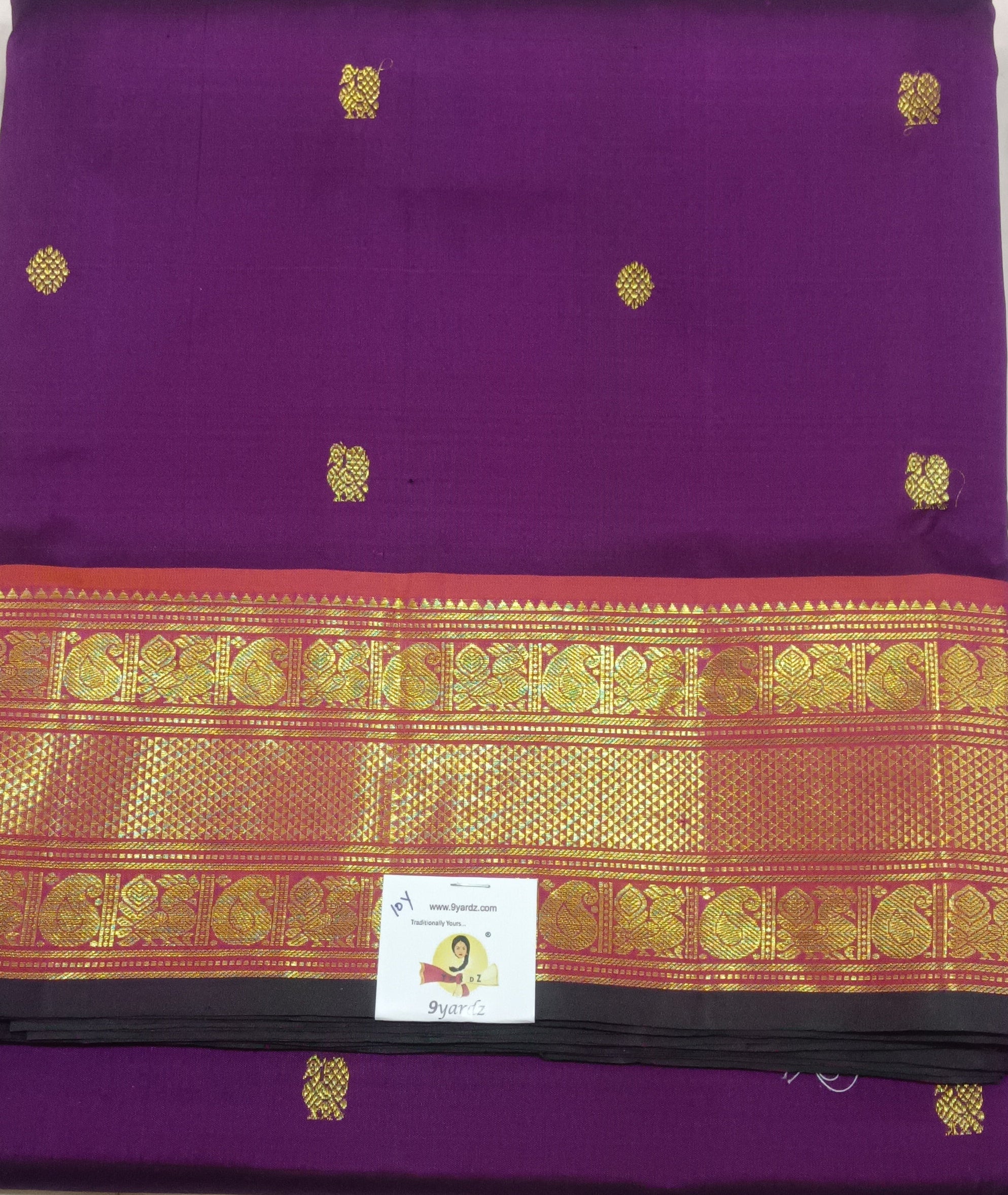 Deep Purple Pure Silk Madisar Saree (10 Yards) with Gold Zari Buttas & Double Border Design Deep Purple Pure Silk Madisar Saree (10 Yards) with Gold Zari Buttas & Double Border Design Deep Purple Pure Silk Madisar Saree (10 Yards) with Gold Zari Buttas & Double Border Design